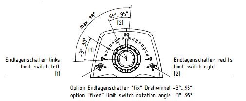 Einstellbar auf -3° bis 30° und von 65° bis 95° Stellweg